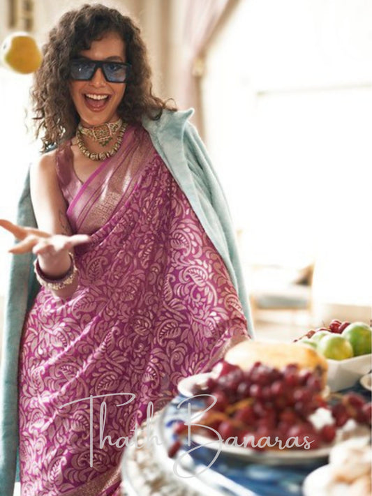 • Lavender & Purple Blended Gaji Satin Silk Saree with Zari Weaving