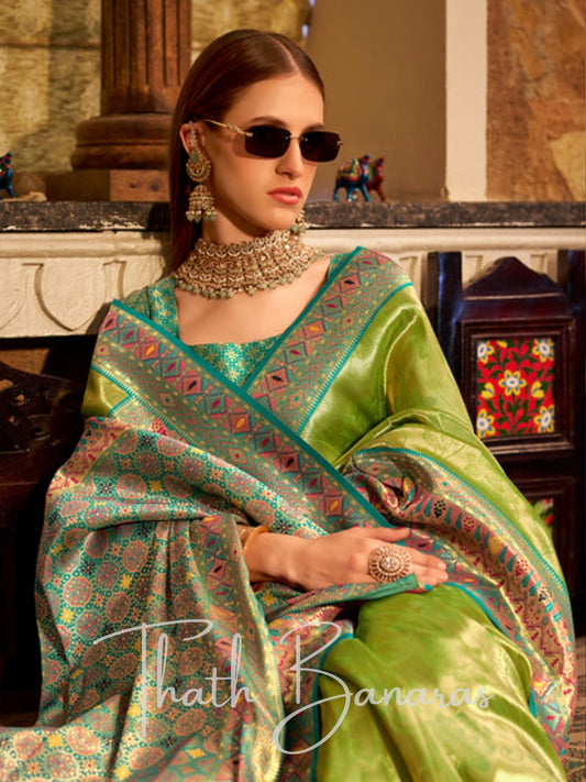 Pastel Green Banarasi Jacquard Tissue Silk Saree with Zari Work