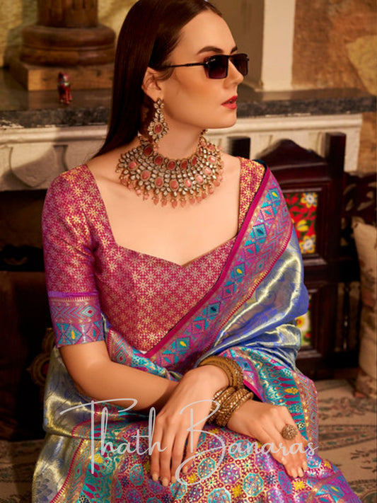 Elegant Woven Tissue Silk Saree with Intricate Zari Weave & Contrast Blouse