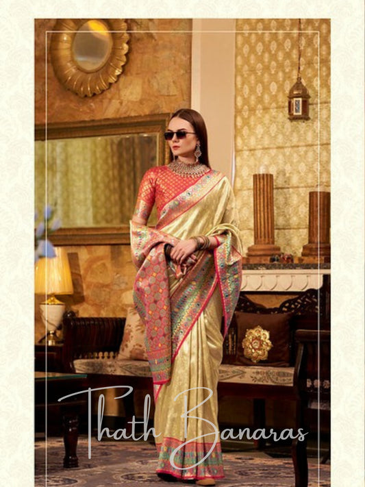 Antique Gold Banarasi Jacquard Tissue Silk Saree with Zari Work