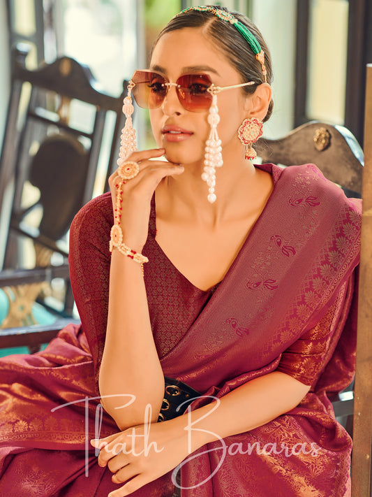 Maroon Soft Handloom Weaving Silk with Copper Zari