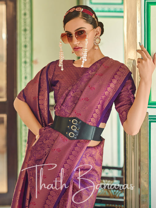 Purple Soft Handloom Weaving Silk with Copper Zari