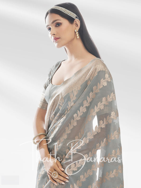 Blue Soft Handloom Weaving Silk with Copper Zari