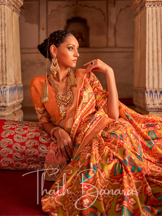 Yellow and Red Soft Cotton Silk Patola with red zari border