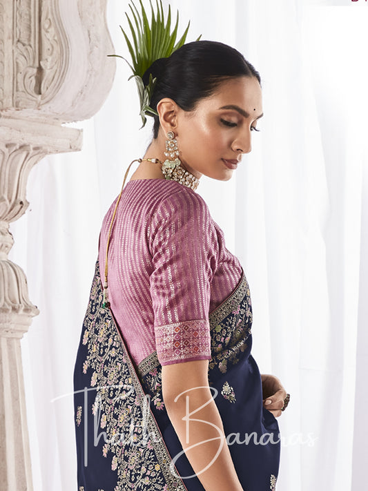 Navy Blue Kora Silk with Designer Minakari Pallu & Fancy Blouse