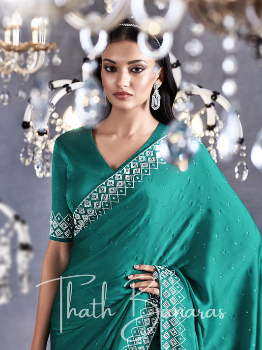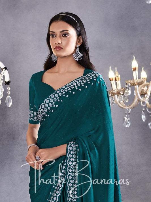 Peacock Blue Pure Satin Viscose with Heavy Zarkan Work