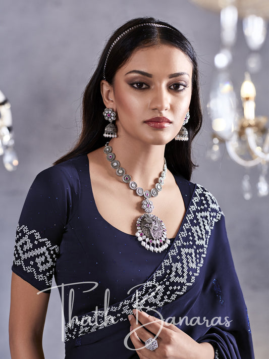 Navy Blue Pure Satin Viscose with Heavy Zarkan Work