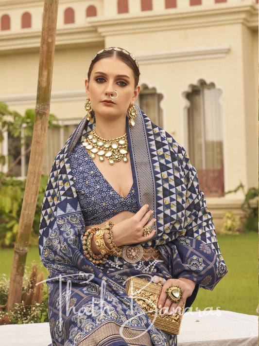Blue Poly Viscose Silk with Patola Print and Glory Finish