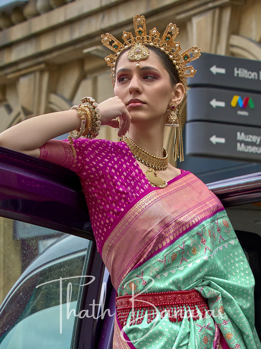 Teal Blue Woven Silk Saree with Intricate Zari work