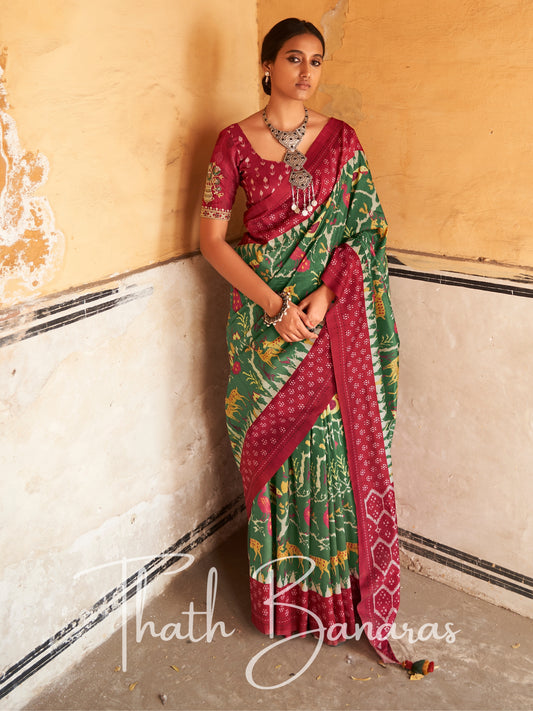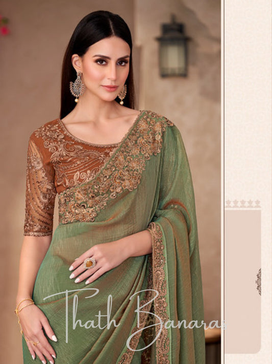 Stunning Green Georgette Silk Saree with Delicate Embroidery