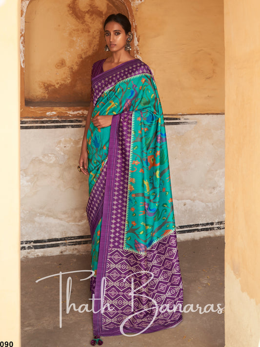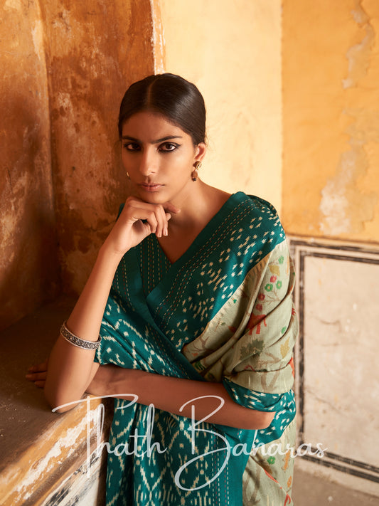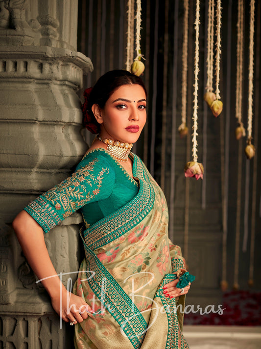 Ocean Teal Banarasi Silk Saree with Intricate Embroidery