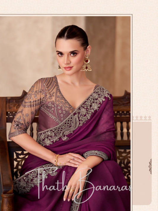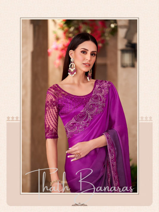 • Regal Purple  Silk Blend Saree with delicate Embroidery