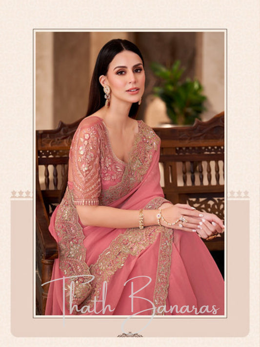 • Peach Radiance Embroidered Georgette Party Wear Saree