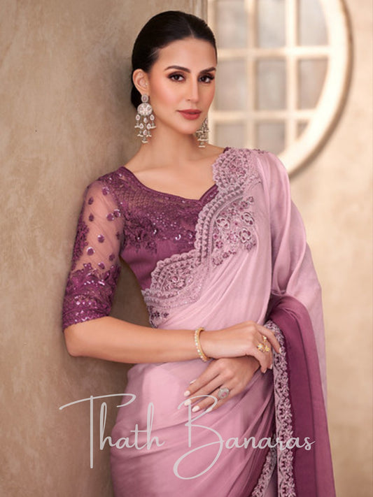 Pink- lilac Embroidered Georgette Saree with intricate embroidery
