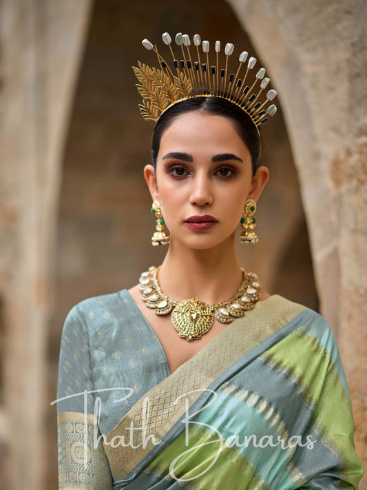 British Green Banarasi Jacquard Tissue Silk Saree with Zari Work