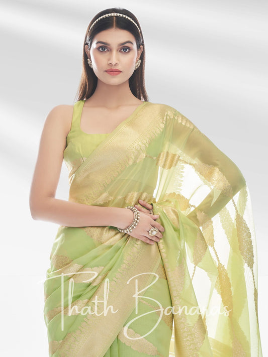 Light green Pure Dola Silk Saree with Fancy Lace Border