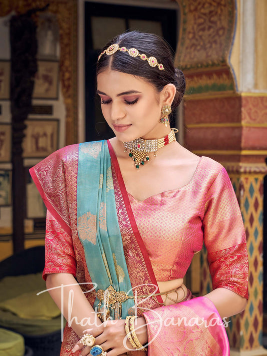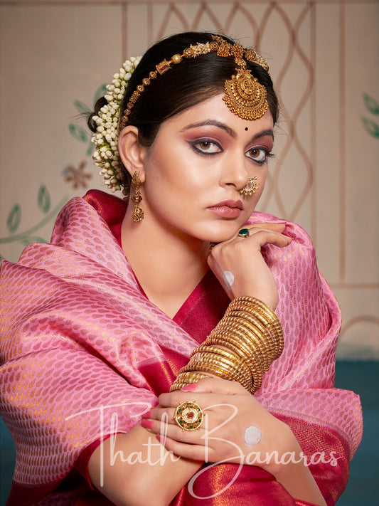 Elora Pink Classic Kashmiri Model Zari Weaving Silk Saree