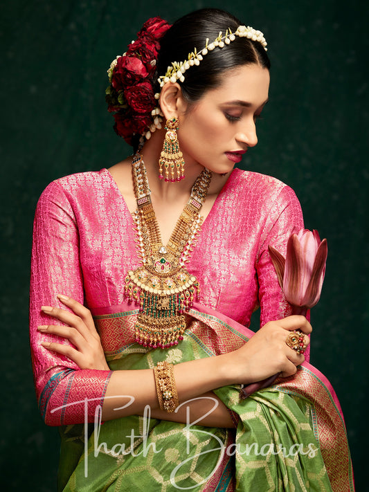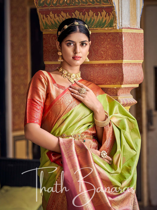 Pear Green Gota Work Pure Kanchipuram Handloom Tissue Silk Saree