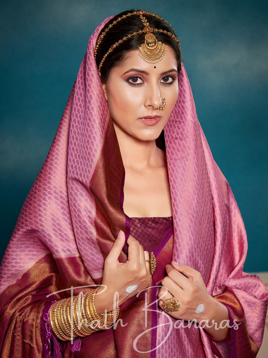 Lotus Pink Soft Kanjivaram Silk Saree With Chaap Dying