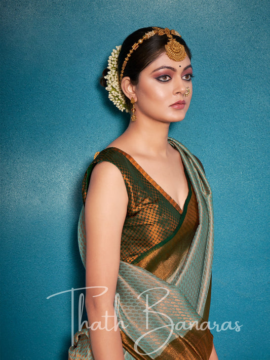 Bitter Green Soft Kanjivaram Silk Saree With Chaap Dying