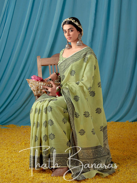 Barley Corn Green Beautiful Traditional Wear Lucknowi Linen