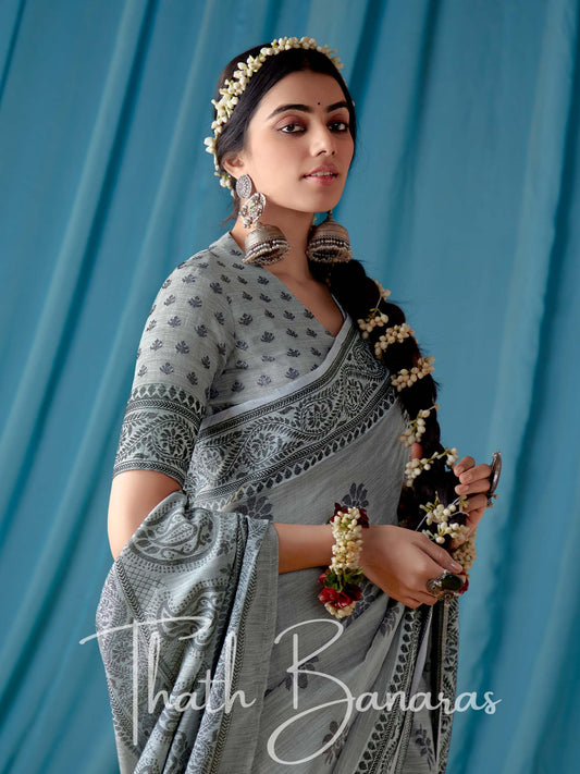 Elora Grey Beautiful Traditional Wear Lucknowi Linen