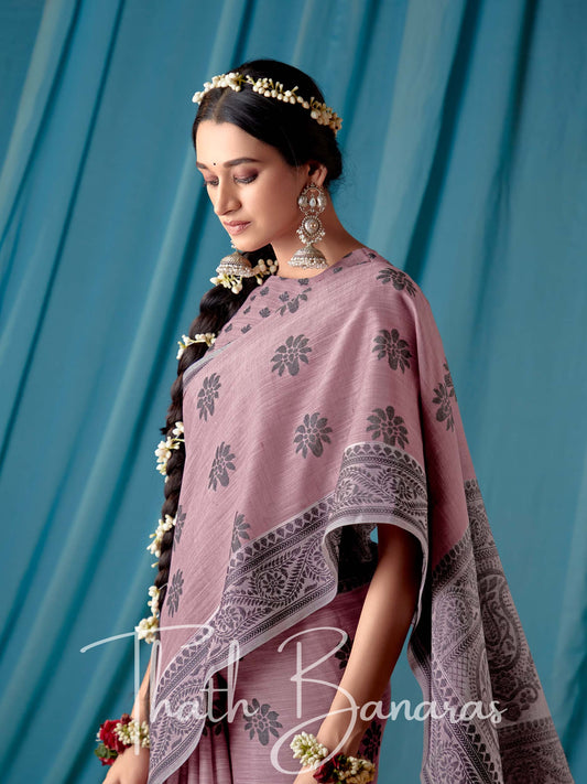 Dull Pink Beautiful Traditional Wear Lucknowi Linen