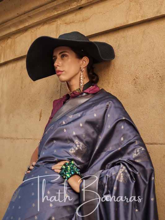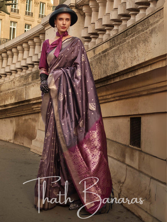 Pecan Brown Soft Silk Handloom Weaving Saree