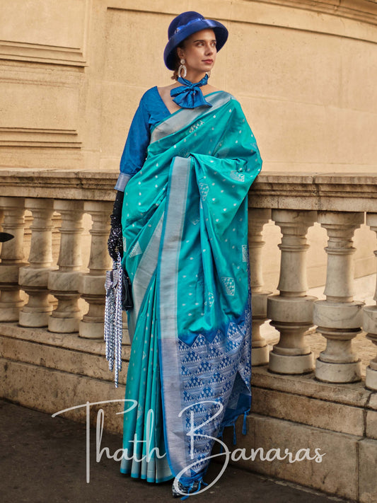 Turquoise Blue Soft Silk Handloom Weaving Saree