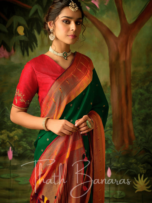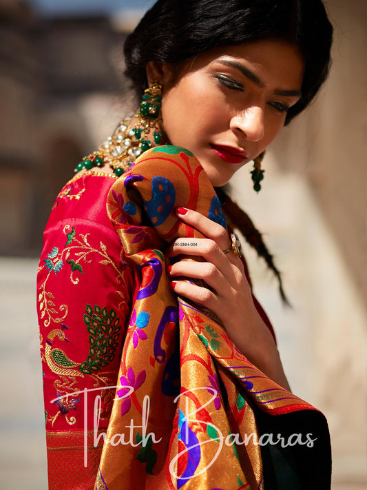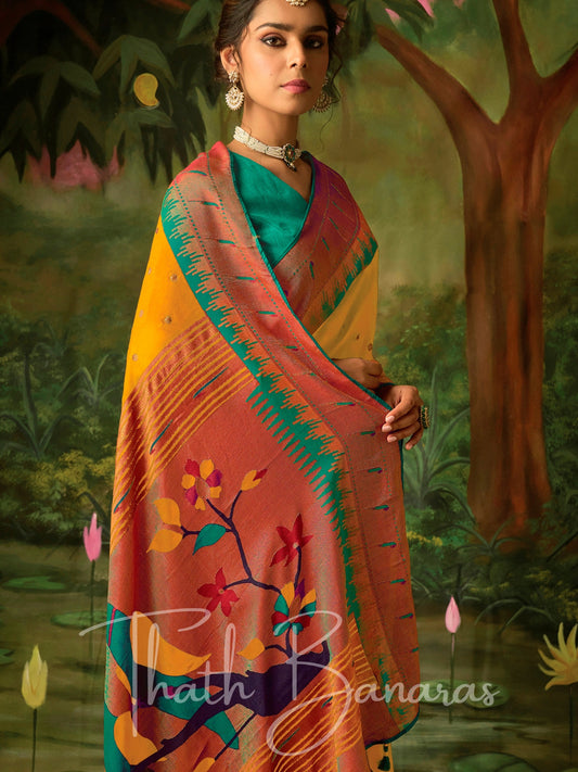 Exquisite Pink Paithani Silk Saree with Traditional Zari Work