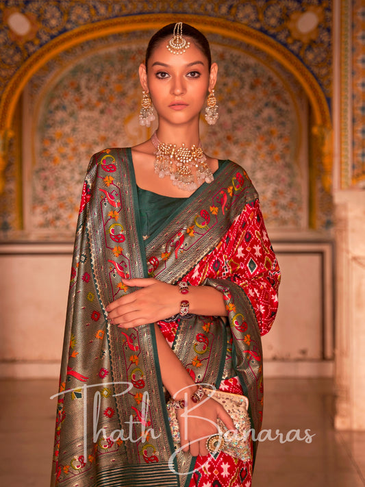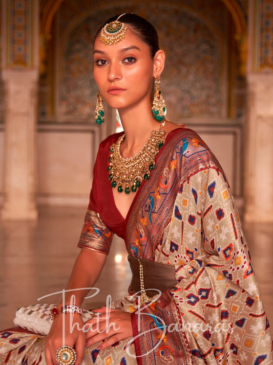 Brown-red multicolor pure patola silk with paithani geometric pallu