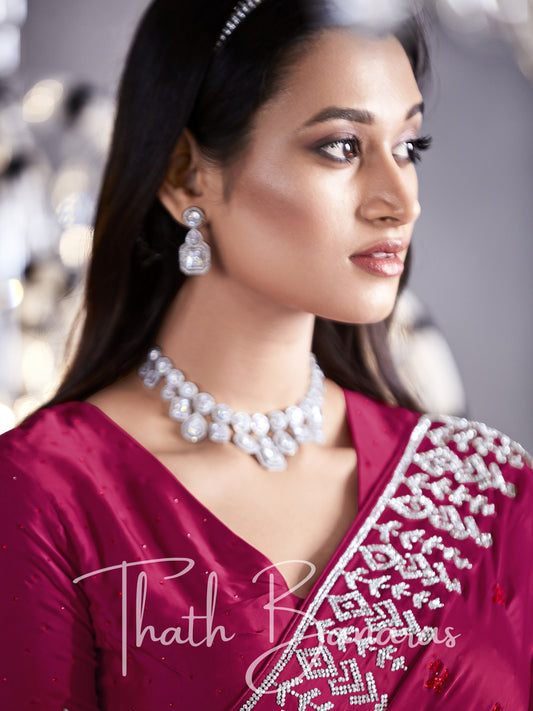 • Dark Pink Pure Satin Viscose with Heavy Zarkan Work