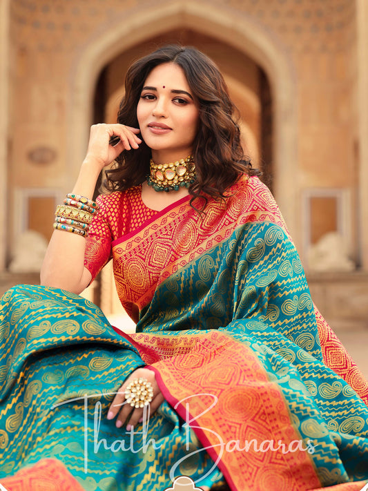 Rama Green and Pink Soft Kanjivaram Chhap Dying Saree