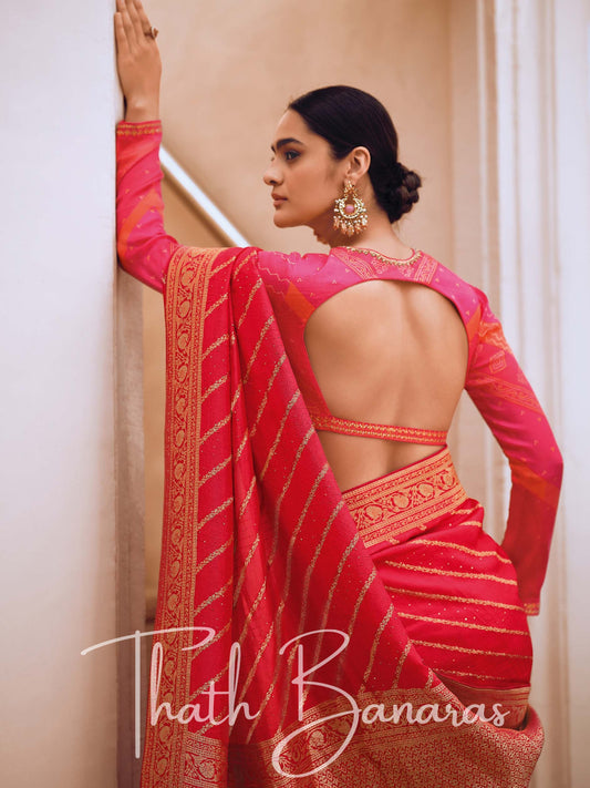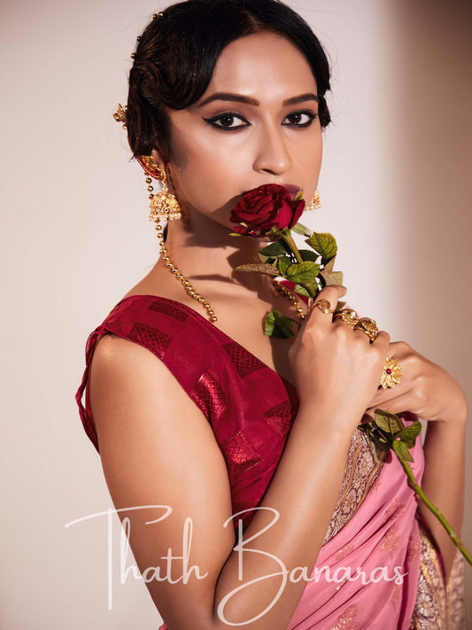 • Pink Kora Silk with Designer Minakari Pallu & Fancy Blouse