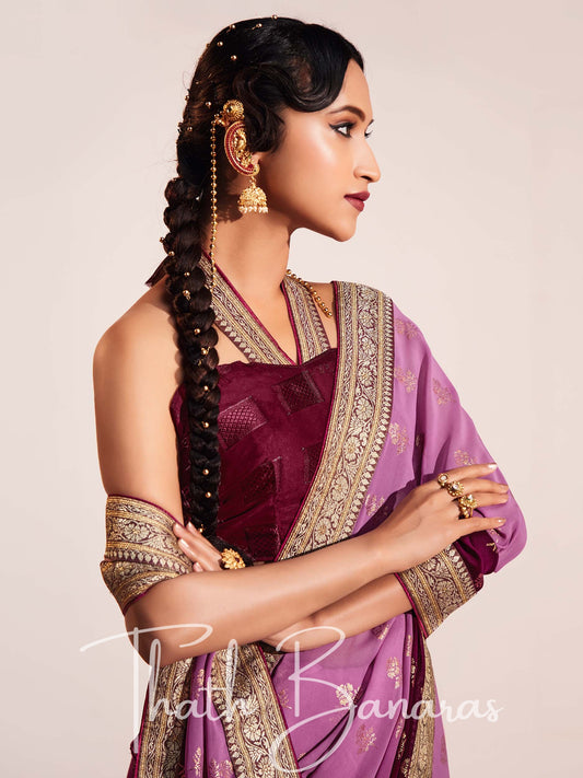 Pink- lilac Embroidered Georgette Saree with intricate embroidery