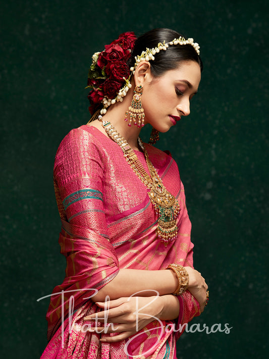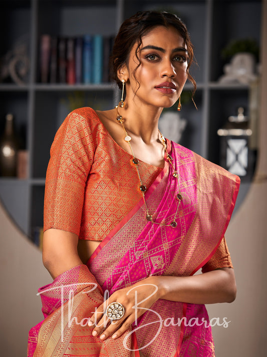 Rani Pink Soft Banarasi silk with Rich Designer Pallu & Contrast Blouse