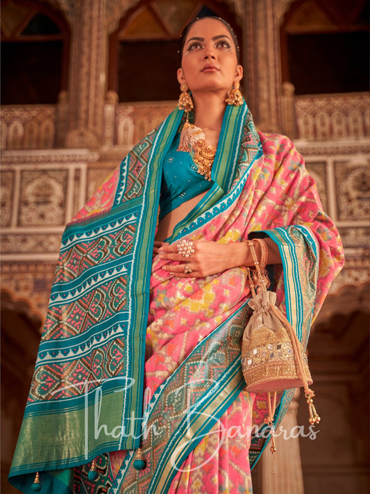 Blush Pink Handloom Patola Soft Silk Ceremonial Classic Saree