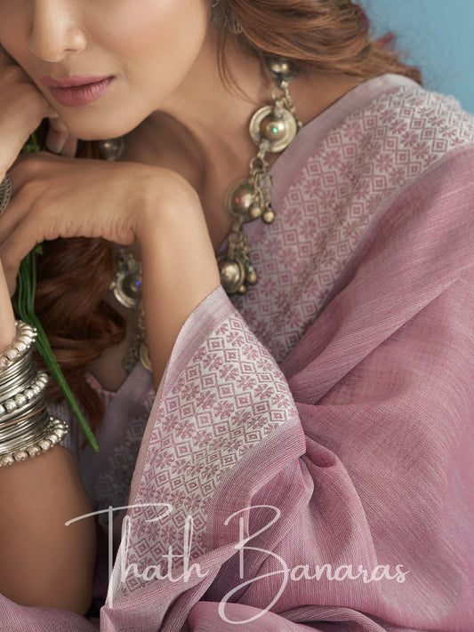Fuscia pink Soft Linen Silk with Chikhankhari Weaved Border