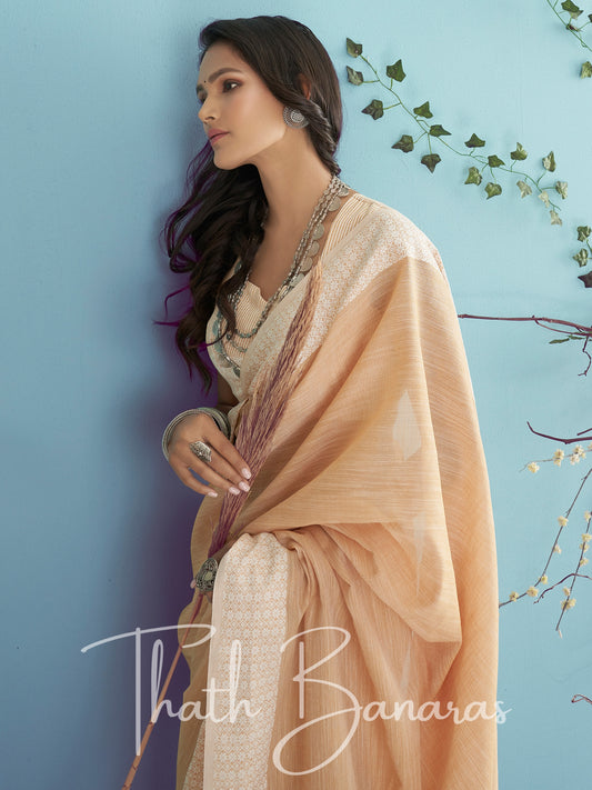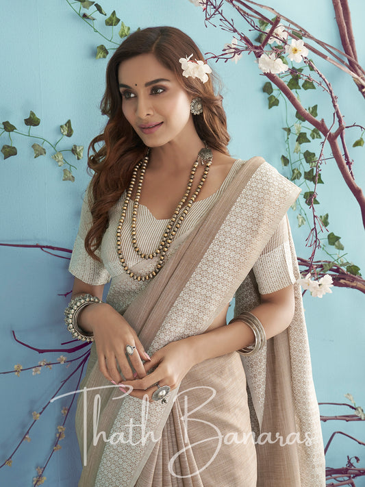 Earth brown Soft Linen Silk with Chikhankhari Weaved Border