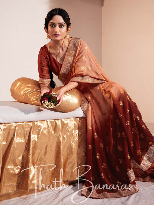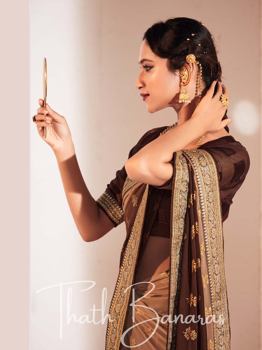 Coffee Bean and Gold Two Tone Heavy Georgette Fabric with Heavy Border