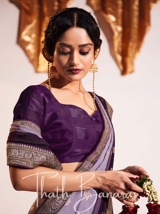Lavender Purple and Violet Two Tone Heavy Georgette Fabric with Heavy Border