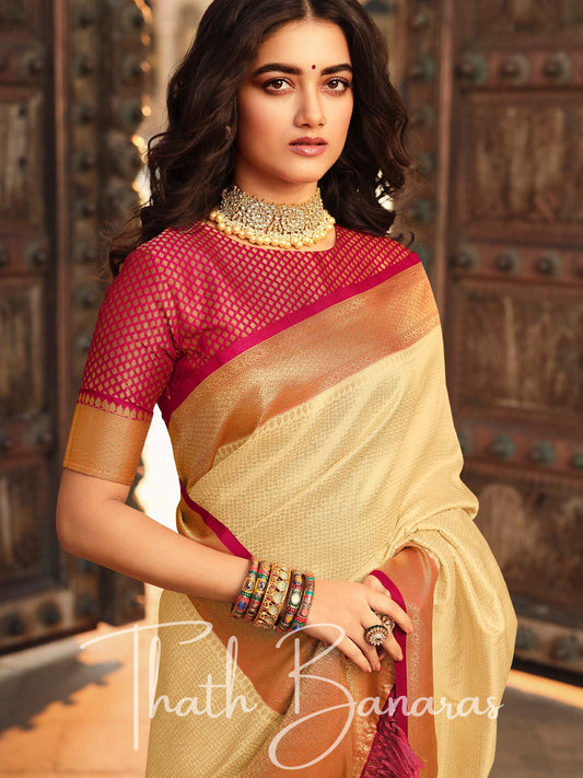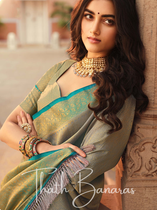 Light Grey Soft Kanjivaram Chhap Dying Saree