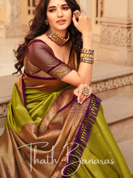 Mulberry Green Soft Kanjivaram Chhap Dying Saree