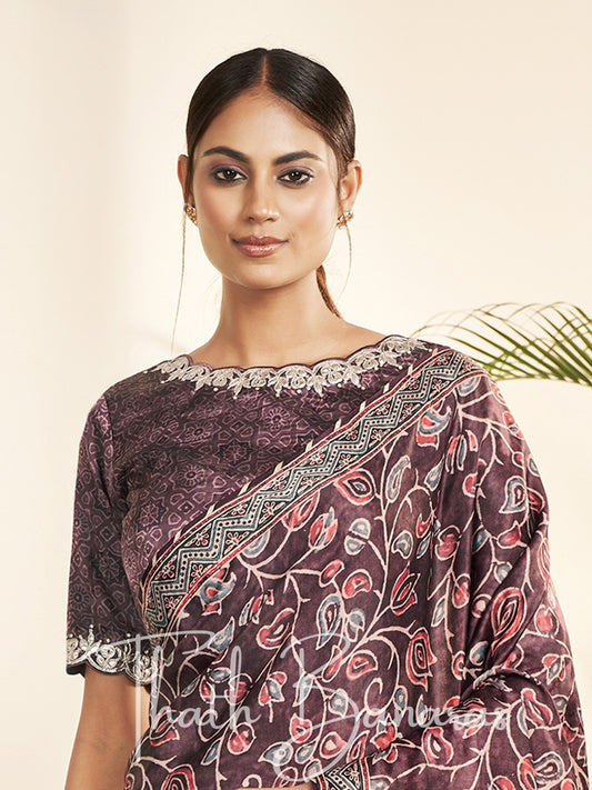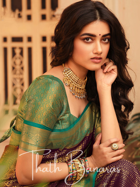 Dark Purple Soft Kanjivaram Chhap Dying Saree