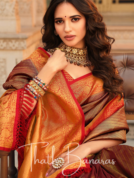 Wine Red Soft Kanjivaram Chhap Dying Saree