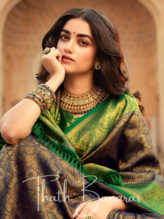 Blue and Green Soft Kanjivaram Chhap Dying Saree