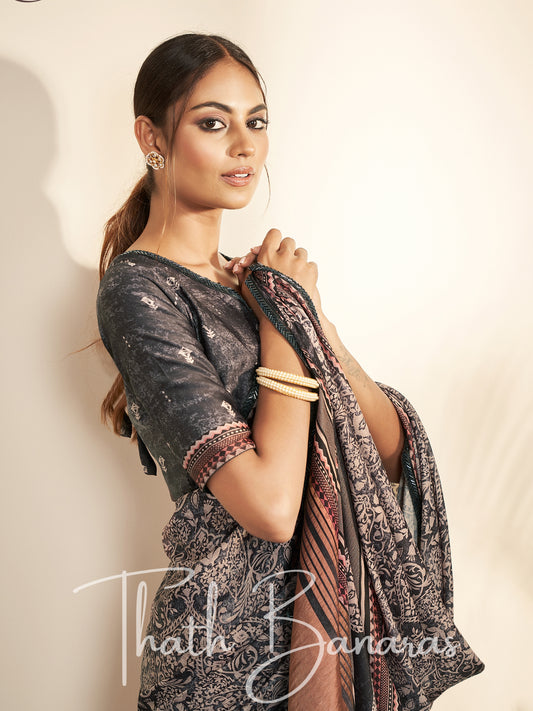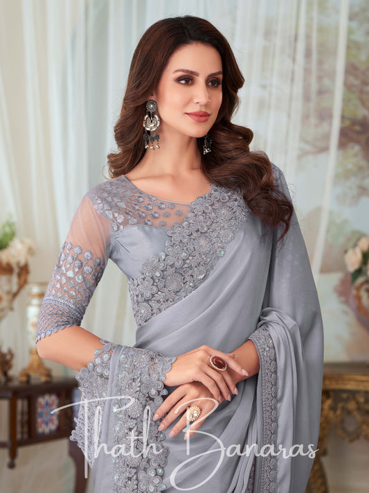 Dove Grey Glorious Silk with Fancy Fabric Work