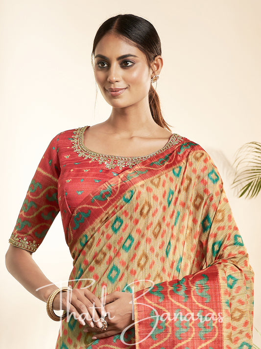 Golden Yellow Soft Kanjivaram Chhap Dying Saree
