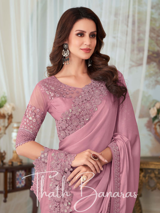 Rose Pink Glorious Silk with Fancy Fabric Work