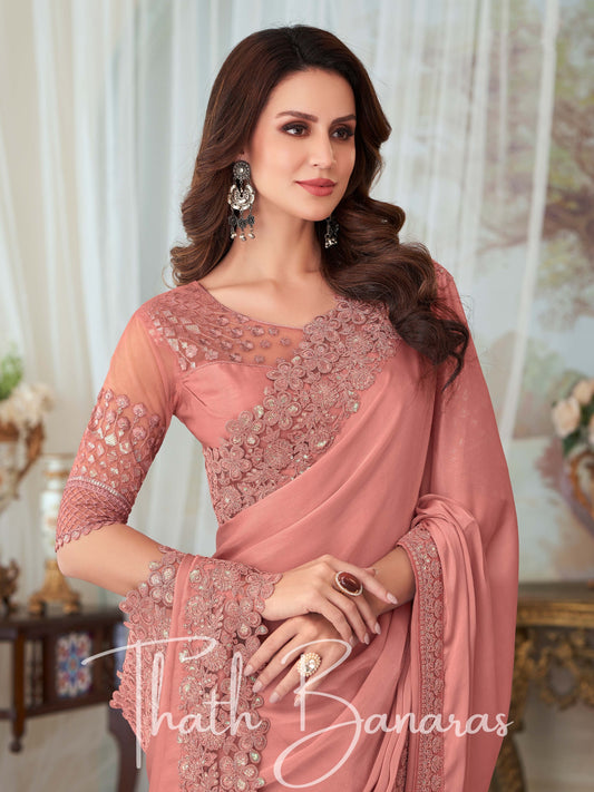 Pastel Peach Glorious Silk with Fancy Fabric Work